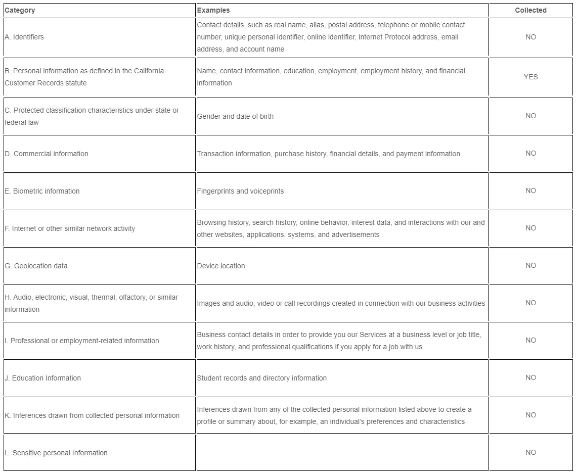 the categories of personal information that we sold, shared, or disclosed for a business purpose;